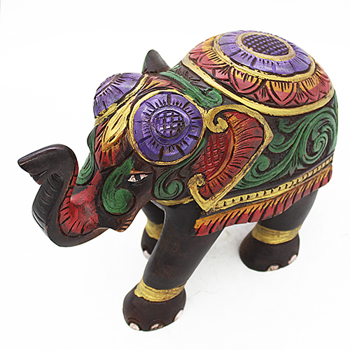 Colourful Wooden Carved Elephant - Large, Hand Carved Wooden Elephant made from Mahogany wood. Each piece is individually hand carved, so differences in wood grain will appear. Has been coloured, polished and treated. Tusks are removable Care Instructions: Wipe with a soft dry cloth to remove dust.