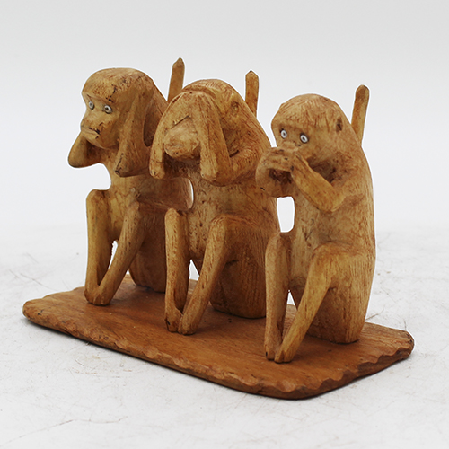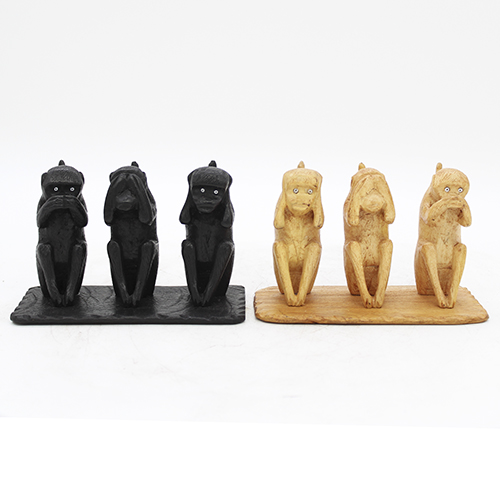 Hand carved Wooden Monkey Kingdom - See-No-Evil Monkey, Hear-No-Evil Monkey, and Speak-No-Evil Monkey are used to show shock and embarrassment. Which specific monkey is used depends on the contents of the message. Available in Black, Brown & Beige colours. Memorable Gift to your favorites....