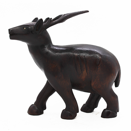 Wood Deer Sculpture, Cute deer with hones, Medium size.
