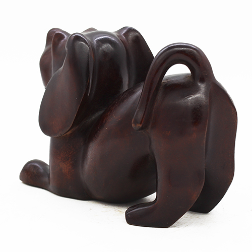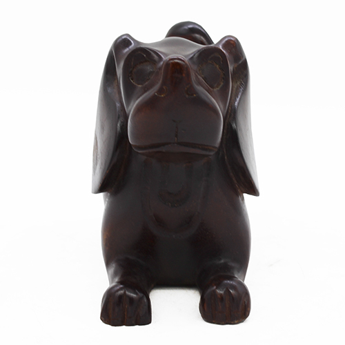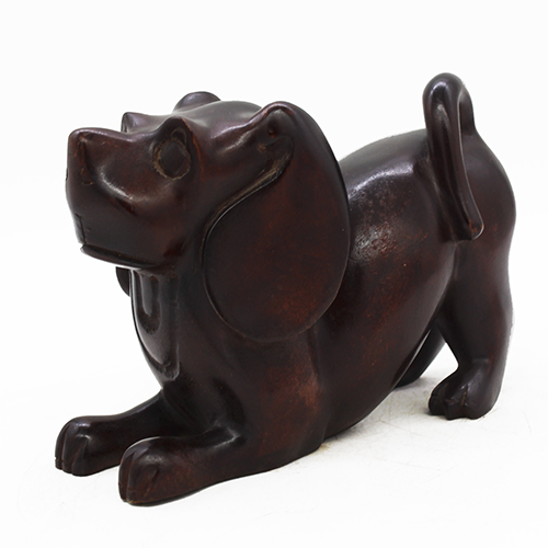 Wooden Dog Sculpture, Carved Puppy, Honey Brown Wood, Nature Animal Carving, Cartoon Style.