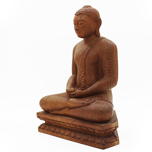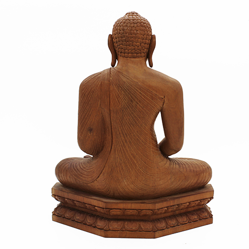 Buddha In Samadhi Pose - Large, Mahogany Wood Hand carved Buddha statue, In this pose, the Buddha is depicted with both hands in the lap, face up, and the legs are crossed, either in a Double Lotus pose (with the ankles of each leg tucked behind one another in a locked position), or in a Single Lotus pose (where one leg rests on top of the other leg). Occasionally, an alms bowl is placed in the lap as well.