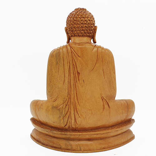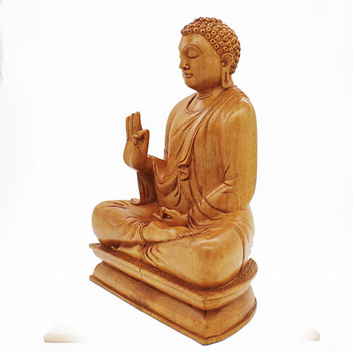 Hand carved Buddha statue with Abhaya Mudra, Large size, Material - Mahogani Wood, Abhaya in Sanskrit means fearlessness. Thus this mudra symbolizes protection, peace, and the dispelling of fear. It is made with the right hand raised to shoulder height, the arm crooked, the palm of the hand facing outward, and the fingers upright and joined. The left hand hangs down at the side of the body.