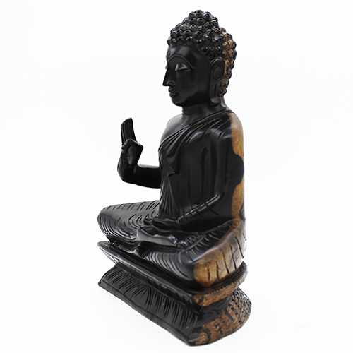 > Ebony Buddha Statue With Abaya Mudra - Large