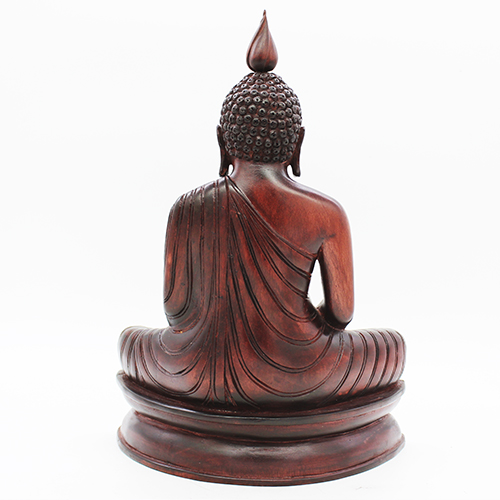 Mahogany Wooden Carved Meditation Buddha Statue - Large size, This statue is for people who are either looking for peace and clam in their lives, or for those who wish to improve their own meditation skills. People will often buy a Meditation Buddha if they want to set up a \\\\\\\\\\\\\\\"serenity room\\\\\\\\\\\\\\\" or a corner of their house where they can sit in calm for a little while and unwind. In this pose, the Buddha is depicted with both hands in the lap, face up, and the legs are crossed, either in a Double Lotus pose (with the ankles of each leg tucked behind one another in a locked position), or in a Single Lotus pose (where one leg rests on top of the other leg). Occasionally, an alms bowl is placed in the lap as well.