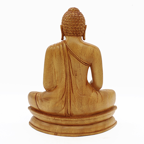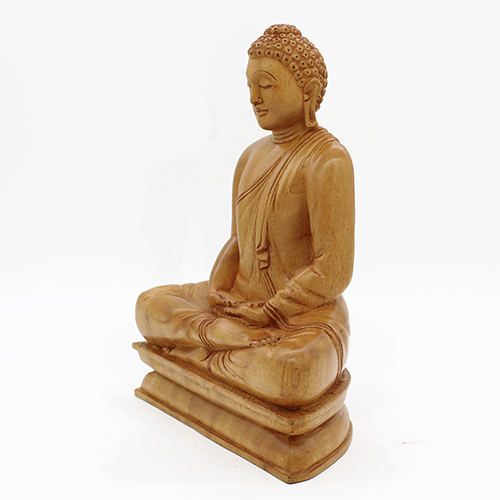 Mahogany Wooden Carved Meditation Buddha - Large, This statue is for people who are either looking for peace and clam in their lives, or for those who wish to improve their own meditation skills. People will often buy a Meditation Buddha if they want to set up a \"serenity room\" or a corner of their house where they can sit in calm for a little while and unwind. In this pose, the Buddha is depicted with both hands in the lap, face up, and the legs are crossed, either in a Double Lotus pose (with the ankles of each leg tucked behind one another in a locked position), or in a Single Lotus pose (where one leg rests on top of the other leg). Occasionally, an alms bowl is placed in the lap as well.