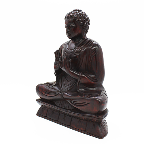 Wooden Carved Teaching Buddha - Large, By Mahogany wood, This statue signifies wisdom, understanding, and fulfilling destiny. Both hands are held at chest level, with thumb and index fingers forming a circle. The right hand is turned palm in, while the left hand is turned palm out.